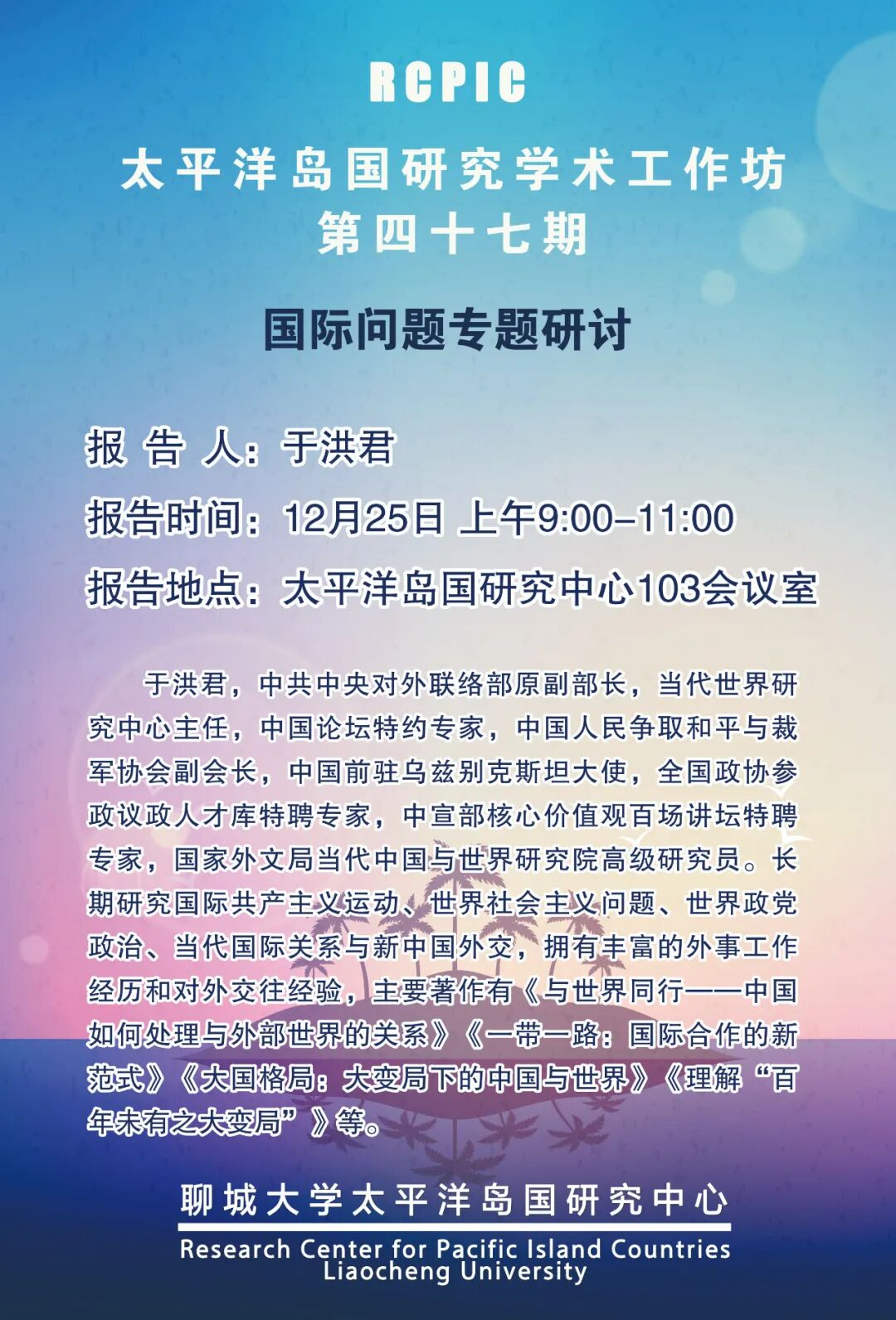 讲座预告丨于洪君做客太平洋岛国研究中心第四十七期学术工作坊