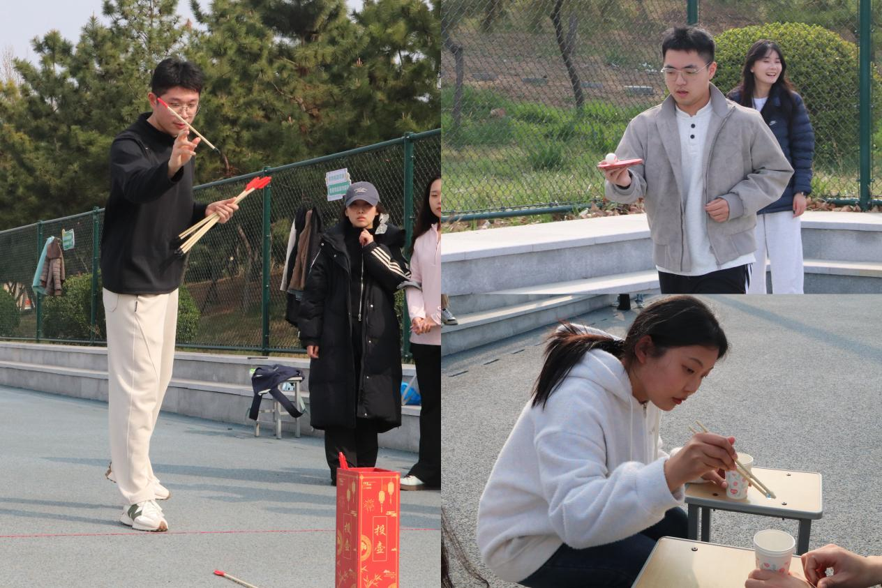 于东校区操场举办“活力研途,悦动青春”趣味运动会。 本次运动会设置了个人赛与团体赛两个类别,共包括乒乓竞速、趣味投壶、筷速夺珠、两人三足、马背夹球、默契引路六个项目。比赛现场气氛热烈,同学们全情投入、各显身手,在竞技中尽情释放青春活力。在乒乓竞速、筷速夺珠等项目中,参赛选手节奏把控得当,动作娴熟,充分展现了良好的协调性与专注力;趣味投壶环节中,选手们沉着应对、精准投掷,命中瞬间引发阵阵欢呼,现场气氛轻松愉快。两人三足、马背夹球、默契引路团体项目更是将活动推向高潮。各队伍步调一致、密切配合,队员之间默契十足,在比拼中既考验了团队协作能力,也充分展现了篮球预测