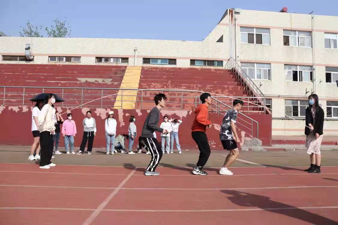 于东校区田径场举办“明之尚美,馨德亦缘”宿舍趣味运动会。 四月午后,春光灿烂。同学们准时到达田径场,为运动会做好热身准备。首先开始的项目为跳大绳比赛。该比赛以宿舍为单位,二到三人一组,分组进行。随着裁判哨声响起,参加跳大绳比赛的同学们脚下生风、身轻若雁、配合默契,伴着跳绳的节奏上下跃动,尽自己的最大努力跳稳、跳好。同学们通过一根大跳绳,连接起团结与友爱,演绎出奋斗与拼搏。跳大绳比赛举行期间,三人四足比赛也进入准备阶段。各宿舍的同学们三人一组,将两条绳子绑在小腿,提前练习走路方法。随着裁判员一声令下,三人四足比赛开始。各组同学们紧紧的揽着肩膀,喊着响亮的口号,迈着整齐的步伐,拼尽全力向终点迈进。比赛结束后,裁判员结合跳大绳成绩与三人四足成绩,评选出一二三等奖。最终,群星13#313宿舍获得一等奖;群星13#311、10#419、14#228宿舍获得二等奖;群星13#313、13#223宿舍获得三等奖。 本次宿舍趣味运动会的顺利举办,不但有利于使同学们在比赛的同时享受运动的乐趣,提高同学们进行体育锻炼的积极性,而且有益于增强宿舍内部的凝聚力,营造友爱团结的宿舍氛围。(通讯员 王元君)