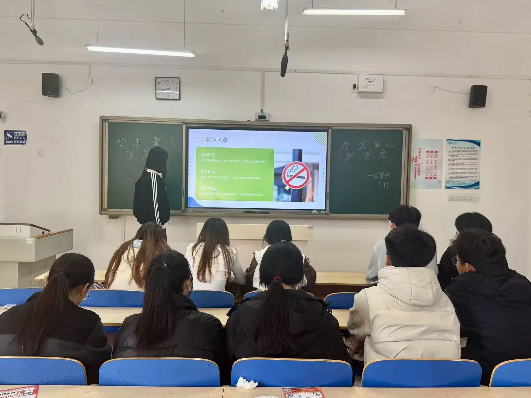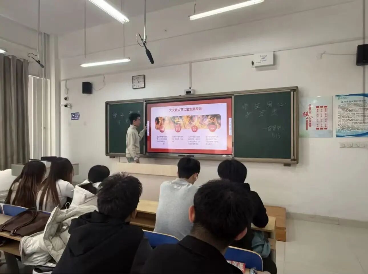 于6#A403教室举办“讲消防,护安康”消防PPT大赛。 参赛选手依次上台,结合精心制作的消防安全PPT,从火灾成因、预防手段、应急处理及疏散自救等多个方面展开讲解,并通过真实案例、数据统计和生动图片,直观全面地展现消防安全在日常学习生活中的关键作用。 崔婧文以校园典型火情为例,剖析事故原因与严重后果,警示同学们务必重视宿舍的用电安全,并通过动态图示还原火场疏散路径选择,呼吁同学们争当消防宣传的志愿者。张东齐系统阐释火灾对生命与财产的双重威胁,强调同学们需扎实掌握基本防火灭火常识,同时借助视频演示,向同学们普及常见消防器材的正确使用方法。 参赛选手在讲解过程中向同学们普及日常消防知识并进行互动提问,进一步加深同学们对消防安全的理解,强化其防范意识。学生评委依据选手演讲的内容完整性、逻辑严谨性、语言表达能力等多个方面进行综合评价,最终赵江婷获得一等奖,张东齐、崔婧文获得二等奖,窦英杰、周琦鑫、朱妍获得三等奖。 本次大赛的顺利举办,不仅有助于为同学们搭建交流展示的平台,推动同学们将理论转化为可落地的避险方案,强化其应急实操能力,而且有助于营造主动学习消防的良好氛围,为筑牢消防安全防线奠定基础。 (供稿:窦英杰 张诺 陆雅馨 初审:陆雅馨 复审:宋佳珊 终审:尤姗姗)