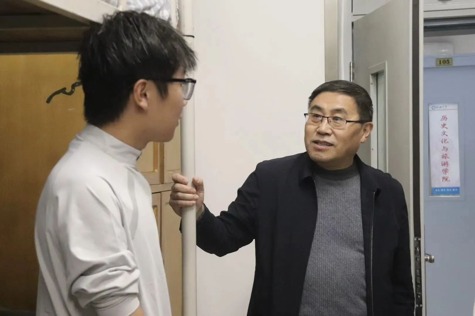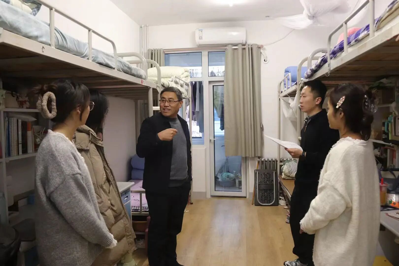 开展“走访宿舍督安全,情系学子暖心田”宿舍走访活动。学院党委副书记、副院长卢庆洪,辅导员薛晓宇、尤姗姗、王旭辉深入宿舍走访并进行安全检查。 在安全督导方面,老师们以消防安全和用电安全为重点,结合具体案例讲解灭火器使用方法、火灾逃生等消防知识,重点查看公共区域是否存放易燃易爆物品。 卢庆洪在走访中提醒学生,严禁在宿舍使用明火、私拉电线以及违规使用大功率电器,并强调宿舍内禁止吸烟。针对部分宿舍卫生杂乱问题,他阐明保持宿舍卫生整洁的重要性,鼓励学生自主制定值日表、使用收纳工具等方式,维护宿舍整洁环境。 走访过程中,老师们积极与学生进行交流,详细询问宿舍装修后设施使用和居住情况,倾听学生在生活等方面的需求与建议。老师们在了解到部分学生正受感冒困扰后,细致叮嘱学生要做好感冒防范工作,同时加强宿舍日常通风,并保持个人卫生,让学生深切感受到学院的温暖与关怀。 本次活动的顺利举办,不仅有利于进一步消除宿舍安全隐患,明确卫生标准,掌握学生需求,而且有利于拉近师生之间的距离,增强学生的归属感和幸福感,为学院今后的学生管理工作打下坚实基础。 (供稿:张东齐 张诺 陆雅馨 摄影:王梦 初审:陆雅馨 复审:宋佳珊 终审:尤姗姗)
