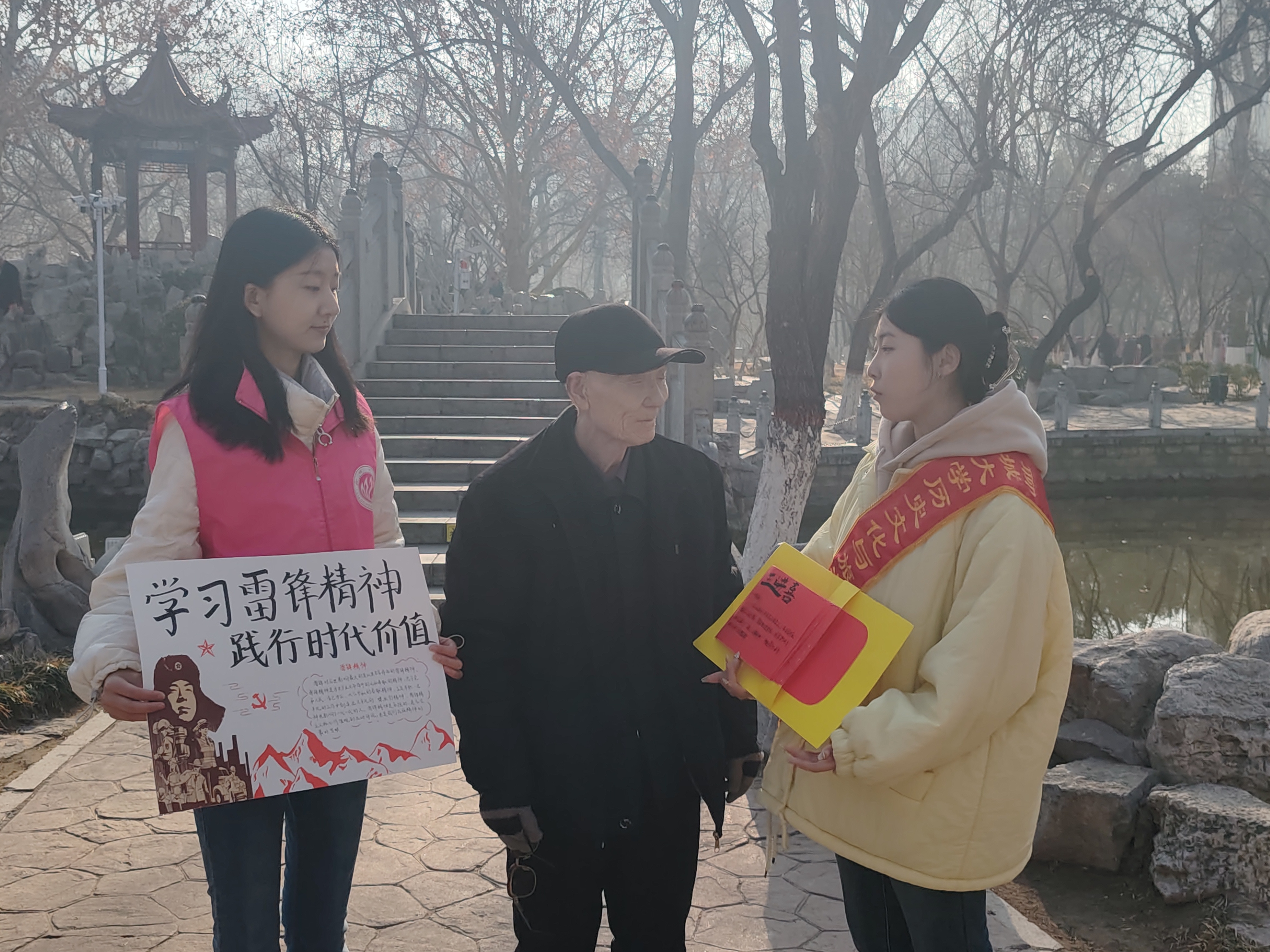 于聊城市人民公园举办“学习雷锋精神,践行时代价值”活动。 活动伊始,志愿者向群众展示亲手制作的人物抽拉卡,举例王进喜此类具有雷锋精神的模范人物。从多个触动人心的故事中,群众感悟到高尚品质为社会带来的巨大影响,随后,志愿者从雷锋生平经历、雷锋助人故事两个方面进行宣讲,向群众传递雷锋爱岗敬业、乐于助人的精神品质,展示出雷锋精神的实质,并揭示雷锋精神产生的深远影响以及在新时代发挥的重要作用。最后,志愿者引导群众思考弘扬雷锋精神的方式方法,呼吁群众深刻认识雷锋精神,使雷锋精神在新时代焕发新的生机活力。志愿者强调,雷锋精神是中国特色社会主义核心价值观的体现,把雷锋精神发扬光大是我们每个人的责任。群众从雷锋精神宣讲和特色化传递雷锋故事中拓展继承与弘扬雷锋精神的途径,并明确表示:我们应志存高远、脚踏实地,学习雷锋同志奉献、敬业、创新、创业的崇高精神,做起而行之的行动者、攻坚克难的奋斗者、心系人民的奉献者,在新征程中展现时代担当。 本次活动的顺利举办,有利于传递雷锋故事,使群众树立弘扬雷锋精神、践行社会主义核心价值观的意识,为社会和谐友爱之风的形成提供良好助力。 (供稿:刘舒雅 摄影:刘舒雅 初审:李月 复审:吴志钰 终审:尤姗姗)