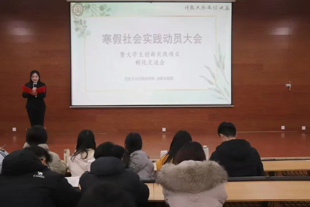 于6#106报告厅举办寒假社会实践动员大会。 主持人阐述了社会实践活动的重要意义,强调其对学生成长方面的积极作用。聊城大学春雨志愿服务团代表张文豪分享社会实践经验,他指出志愿团秉承“科技赋能社区,志愿服务民生”的理念,多次前往社区开展各类社会实践活动,并取得出色成果。创新实践部成员向同学们介绍了社会实践的流程及注意事项。其中,杨萧菲就社会实践活动的选题方向和详细的写作要求进行讲解,她建议同学们提前规划实践项目,明确目标,合理安排时间,确保工作高效推进;李炜恒介绍调研报告撰写方式及注意事项,就调研报告的标题、内容、格式等方面展开针对性讲解,建议同学们在报告中以图片形式进行更直观地展示;孔晨骞围绕志愿服务纪实册的书写展开陈述,强调项目与专业技能结合的重要性,倡议同学们在项目选题及成果上进行突破;王瑞雪介绍PPT和视频制作格式要简洁、内容要清晰、主旨要鲜明,同时对评分细则加以阐释。 本次寒假社会实践动员大会的顺利举办,不仅有利于激发同学们参与社会实践的热情与积极性,帮助他们明确实践的目标与方向,还有利于增强同学们的社会责任感,促进学校教育与社会需求结合,为社会发展贡献青春力量。 (供稿:郭俊霞 摄影:郭俊霞 初审:于舒然 复审:张程程 终审:尤姗姗)