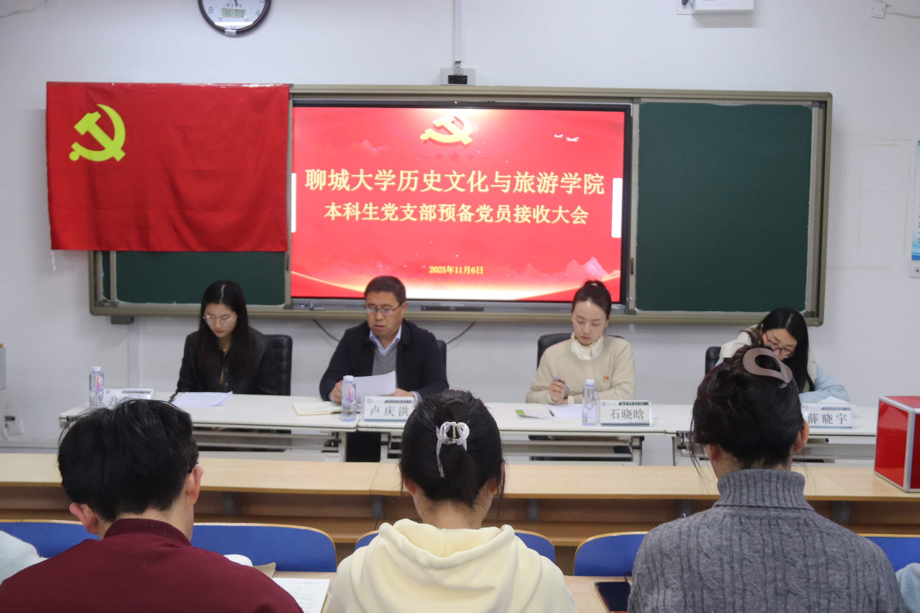 本科生党支部于6#A404教室召开本科生党支部预备党员接收大会。学院党委副书记、副院长卢庆洪,本科生党支部全体成员出席本次会议。大会在庄严的国歌声中拉开序幕,全体人员精神饱满、齐声高唱。陈春阳等20名发展对象依次宣读志愿书,向党组织汇报对党的认识、入党动机、个人履历、家庭及社会关系情况,表达对加入党组织的坚定决心。 各入党介绍人结合发展对象表现,说明发展对象的思想动态、学习表现等,并表明同意推荐其入党的意见。 吕超凡报告各发展对象的审查情况,通过综合评估,确认20名发展对象均符合预备党员接收条件。与会党员展开讨论,进行无记名投票,并由石晓晗宣读支部大会决议:陈春阳等20名发展对象在考察期间主动学习党的理论知识,踏实肯干、乐于助人,具有很强的责任意识,一致认为陈春阳等20名发展对象具备党员条件,同意接收其为中共预备党员。 卢庆洪对全体党员提出四点要求:一要强化前瞻意识,精准把握关键信息;二要筑牢思想根基,持续深化党的创新理论学习;三要立足专业实际,着力提升综合素质;四要严守纪律规矩,切实发挥党员先锋模范作用。 本次大会的顺利召开,有助于优化党员队伍结构,保持党组织的生机活力,推进党建工作走深走实。未来,学院本科生党支部将以更高标准淬炼党性修养,以更实举措践行初心使命,持续提升党员队伍的整体素养与履职能力。 (供稿:王青 井鲁豫 摄影:王青 井鲁豫 初审:井鲁豫 复审:宋佳珊 终审:石晓晗 尤姗姗)