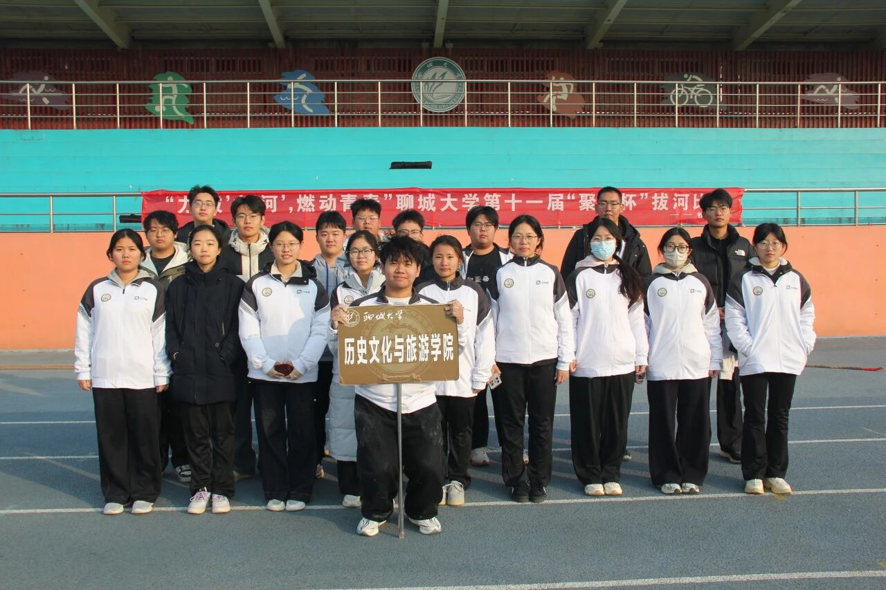 于东校区田径场参加聊城大学第十一届“聚力杯”拔河比赛。 本次拔河比赛采用男女混合赛制,赛程设置科学有序,依次分为淘汰赛、半决赛、决赛三个关键阶段,既考验团队协作能力,更彰显集体拼搏精神。赛前,篮球预测