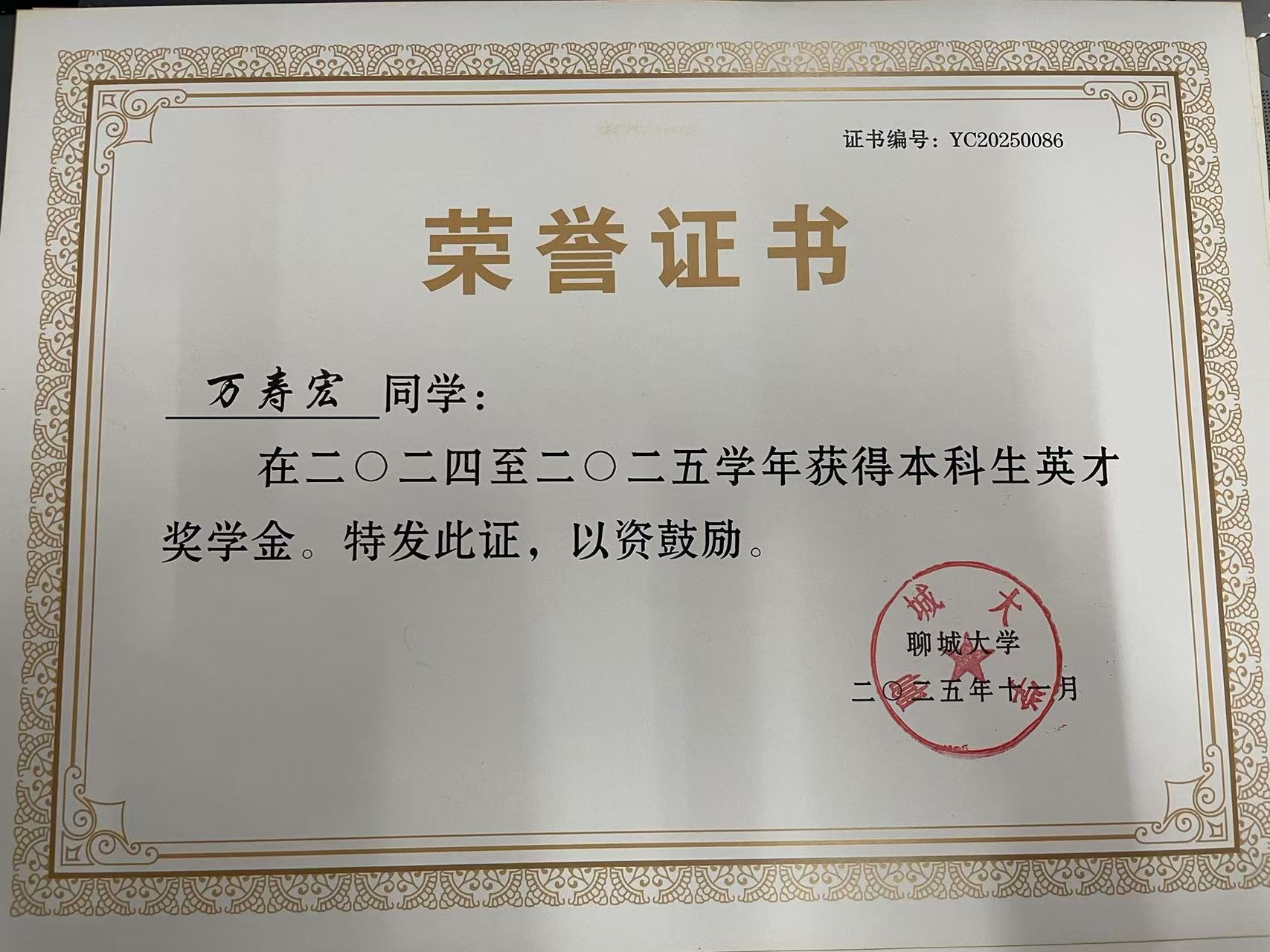 聊城大学十大优秀学生丨万寿宏:纯真而不欠闻达,善良而不失坚强