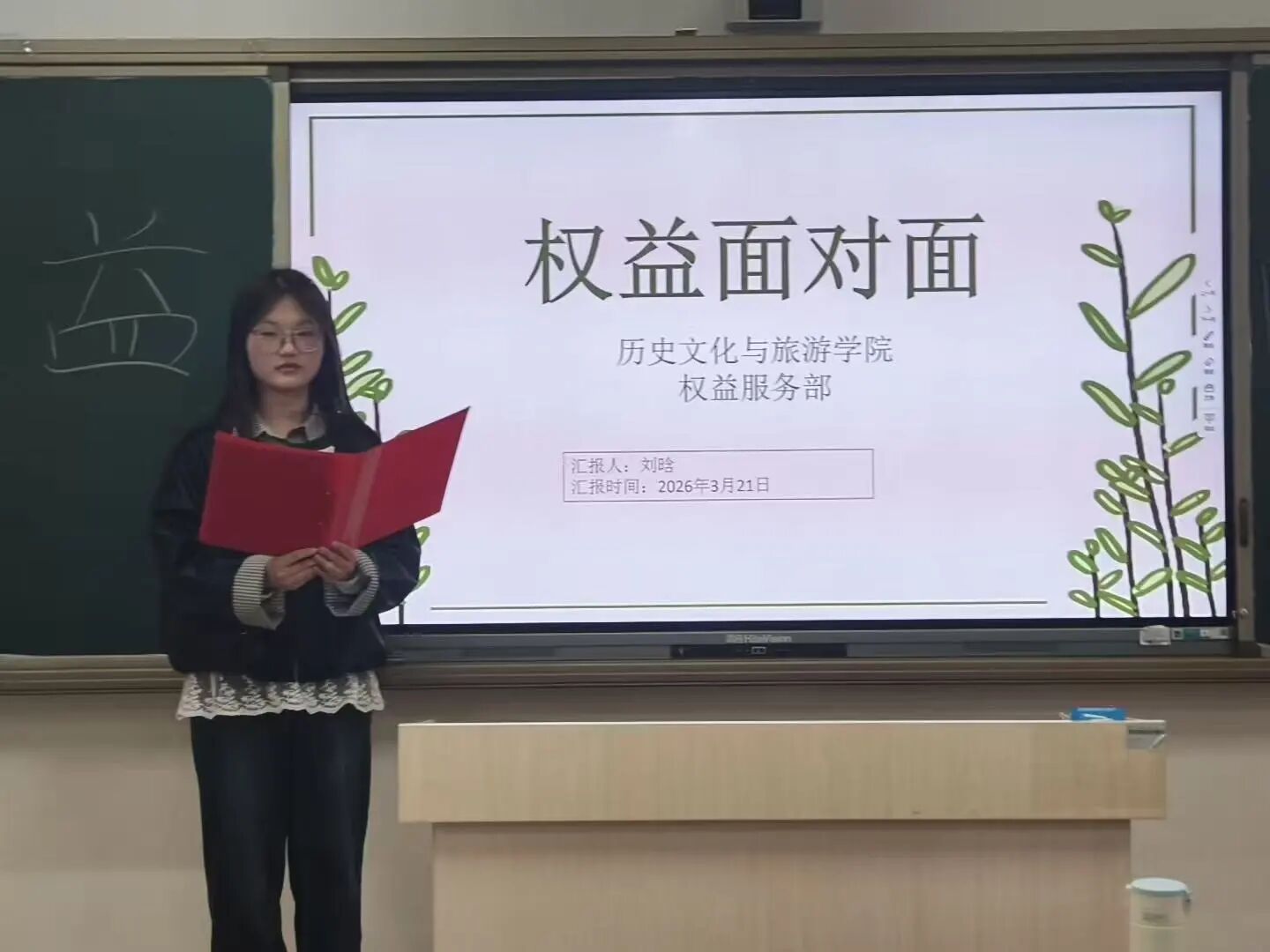 于6#A403教室举办“权益面对面”活动。 主持人结合前期调研收集的学生意见,逐一列出问题并邀请相关部门负责人现场回应。针对同学们普遍反映的宿舍管理标准、澡堂设备与卫生、走廊灯光过亮及设施报修等问题,宿管中心负责人现场回应,将酌情放宽支架使用限制并统一男女生查寝标准,督促承包商保障澡堂设备运行、加强卫生巡视;关于食堂定价规范、食品新鲜及桌椅不足等问题,餐饮服务中心负责人承诺推出学生套餐、严格落实明码标价,并适当增加桌椅数量;对于大服价格标签不符、意见反馈渠道不畅及租赁服装服务等问题,相关部门明确将规范商品标价,设立线上反馈渠道,并整改服装异味、不合身等问题,加强清洁管理,方便学生使用。 活动现场特别设置实用引导环节,工作人员通过投影清晰演示线上报修与投诉建议的操作流程,并公布各区域维修联系方式,引导学生主动反馈问题、积极参与校园共建。现场气氛活跃,互动频繁。 本次“权益面对面”活动,不仅有效拉近学院与学生之间的距离,推动各项诉求落地整改,也为持续完善权益服务机制、营造更加舒适便捷的校园环境注入新的活力。 (供稿:李晓琪 王舒仪 初审:罗佩华 复审:魏志鹏 终审:尤姗姗)