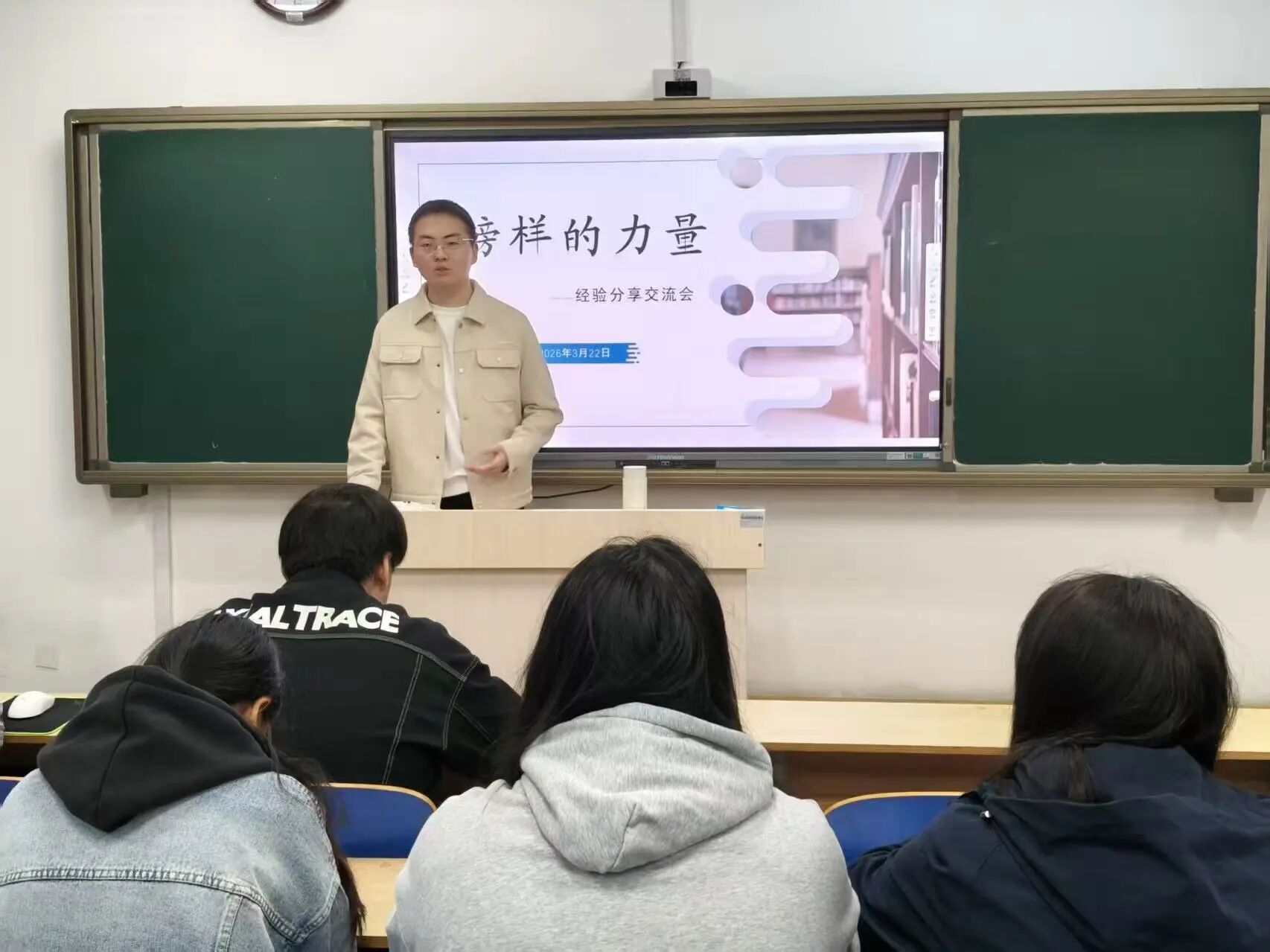于6#A402教室举办“榜样的力量”主题分享会。 本次活动特邀优秀学子牛博担任主讲,他从学业积累、实践历练、价值追求三方面展开分享。学业上,他主张“修学好古,实事求是”,建议跳出教材,拓展《左传》《史记》等原典阅读,紧盯学术前沿动态。保研方面,他梳理材料准备、院校选择等关键环节,分享平衡学业与竞赛的实用方法,现场演示查询招生信息、筛选目标院校的操作技巧。他还鼓励同学们主动参与社会实践,以志愿服务、竞赛获奖丰富履历,为面试积累底气。 互动环节中,同学们就原典阅读方法、学术前沿追踪、保研材料优化等问题踊跃举手提问。牛博逐一耐心解答,结合自身经历给出具体可操作的建议,现场气氛热烈。参与的同学们纷纷低头记录要点,表示通过此次分享,不仅收获了切实可行的备考方法,更在精神上深受鼓舞,对未来的升学之路增添了信心与方向感。 本次活动的顺利举办,不仅有利于为同学们带来升学备考干货,引导他们沉淀智慧、砥砺品格,还以榜样力量点燃学习热情,为推动学院学风建设注入了积极动能,助力同学们为实现升学目标积蓄力量。 (供稿:王青 初审:罗佩华 复审:魏志鹏 终审:尤姗姗)