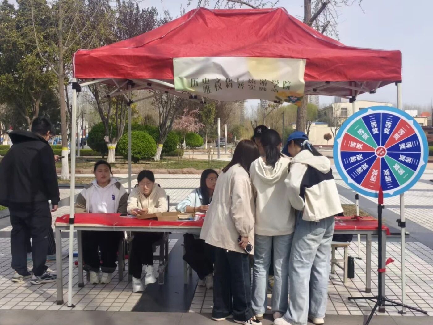 于西校区星月广场举办“权益市集文化”活动。 本次活动聚焦同学们的日常权益热点,创新地采用趣味互动形式普及维权知识。活动设置维权转盘、权益盲抽答题两大特色环节,围绕网购消费、宿舍生活、校园服务、校外消费等常见场景设计互动内容。为提升活动吸引力,志愿者还设置丰富奖品,一等奖为实用A5笔记本,二等奖为特色历史人物钥匙扣,三等奖为觉醒年代主题中性笔,兼具实用性与文化内涵。活动中,同学们通过转动转盘对应维权情景、抽取题目判断正误、小组模拟维权情景演绎等方式参与活动。学院志愿者细心讲解、耐心引导,充分调动同学们的参与热情。同学们在轻松的游戏氛围中学习维权流程、明晰维权途径。活动现场井然有序、气氛热烈。 本次“权益市集文化”活动寓教于行,不仅帮助同学们树立理性消费、依法维权的正确观念,增长维权知识,掌握维权方法,而且有助于营造重视权益保护的校园良好氛围,为同学们的健康成长提供坚实保障。 (供稿:王舒仪 初审:罗佩华 复审:魏志鹏 终审:尤姗姗)