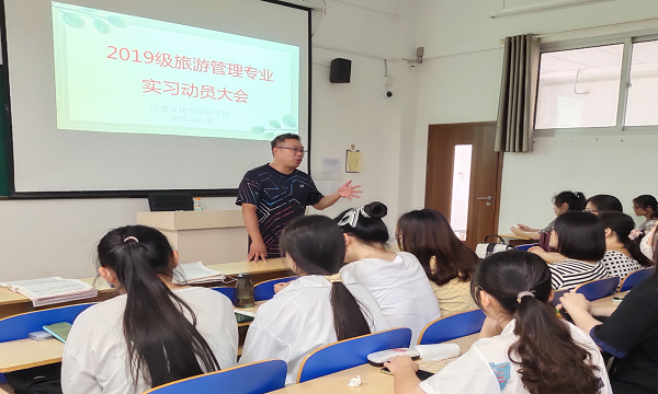 于政史楼A403教室举行2019级旅游管理专业实习动员大会。大会由篮球预测