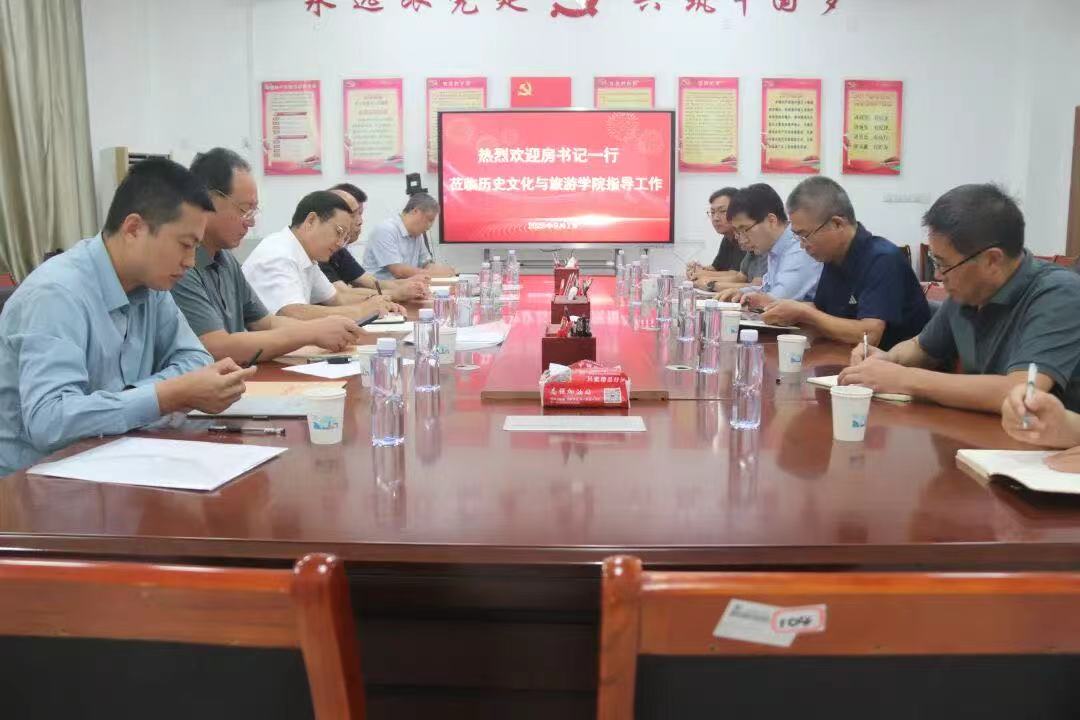 ,就2025—2026学年第一学期开学工作进行调研指导。学院领导班子成员参加座谈会议,会议由学院党委书记陈传利主持。 陈传利代表学院对校领导的到来表示热烈欢迎,并简要汇报了学院的开学准备情况。 院长赵少峰全面汇报了学院上半年的工作成效与不足,以及下半年的重点工作规划。学院上半年成绩显著,历史学专业顺利通过师范专业认证,旅游管理专业国际认证工作稳步推进;教师科研创新能力不断提升,科研成果丰硕,项目经费稳步增长;学生考研率再创新高,在国际和省内多项比赛中也屡获佳绩。当然,学院在高层次项目拓展和高端人才引育方面仍存在提升空间。赵少峰强调,下半年学院将以综合改革为突破口,以立德树人为根本任务,在学科建设、专业认证、教师教学方法创新、学生安全保障等方面精准发力,力求取得更大突破。 房增福认真听取汇报后,对学院在学科建设、科研创新、融合发展等方面取得的成绩给予高度肯定,并结合学校发展策略提出明确要求。他强调学院要严格贯彻落实学校新学期工作部署大会的要求,紧紧围绕学位点建设、学科发展重点任务以及产业协同发展目标,谋求新的突破与成就。要始终以习近平新时代中国特色社会主义思想为根本遵循,立足国家发展大局,进一步拓宽国际学术交流渠道,以国际化视野推动学科建设与人才培养迈向新台阶。 此次调研为学院下一阶段工作明确了重点和方向,学院将围绕重点任务,细化责任分工,强化协同落实,以钉钉子精神抓好各项工作落地见效,努力开创学院事业发展新局面。 (供稿:罗佩华 摄影:魏志鹏 初审:宋佳珊 复审:张程程 终审:尤姗姗 官士刚)