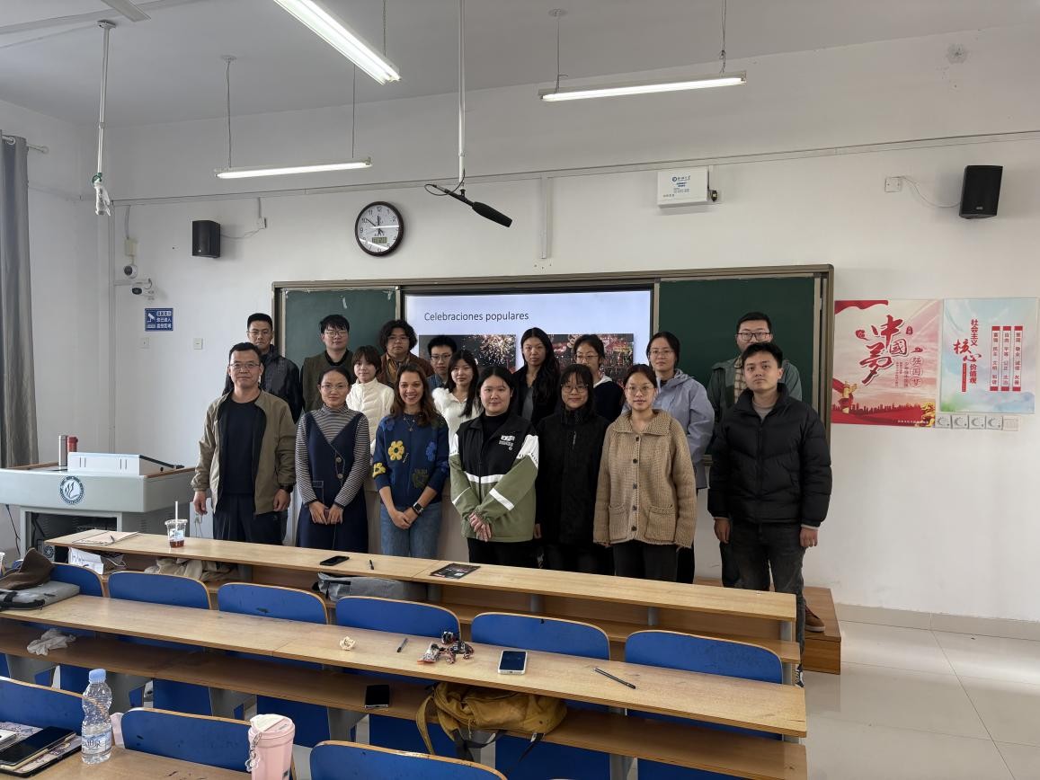教师梁甲瑞副教授特邀古巴本土学者迪安娜贝尔基斯·鲁斯·加西亚(Dianabelkys ruz garcia)主讲区域国别学专业课程,课程由西班牙专业的马翠红老师全程同步口译,2025级区域国别学硕士研究生学生现场聆听并积极互动。 迪安娜以“文化符号+历史根脉”为脉络展开授课:首先生动介绍了古巴享誉世界的代表性人物、特色商品与迷人城市风景——从民族英雄切·格瓦拉和卡斯特罗的革命精神到风靡世界的鸡尾酒和雪茄等文化名片,再到新旧交融的古巴首都哈瓦那,让学生直观感受到古巴的国际影响力;随后她又从历史沿革与文化传承的视角回溯古巴多元族群融合的发展历程,进而分析古巴宗教信仰与音乐民俗艺术之中所体现的世界不同地区多元文化的融合。 在讨论交流环节,篮球预测